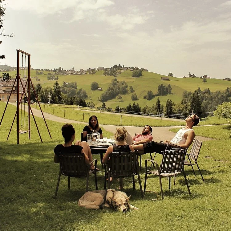 There are probably a million different ways to do a coworkation, but the basic idea is to go on a retreat with a team or group of people with whom you want to achieve something: work on concrete projects; gather ideas and inspiration; or work on strategies and concepts. In my case, there were twenty of us in a big farmhouse in the canton of Appenzell, deep in the Swiss countryside. The building had room for thirty people, leaving ample space for each of us, and was set in large but charming grounds, with plenty of space for recreation. We were surrounded – by nature, cows (lots of them, we were in Switzerland, after all) and abundant possibilities for walks.