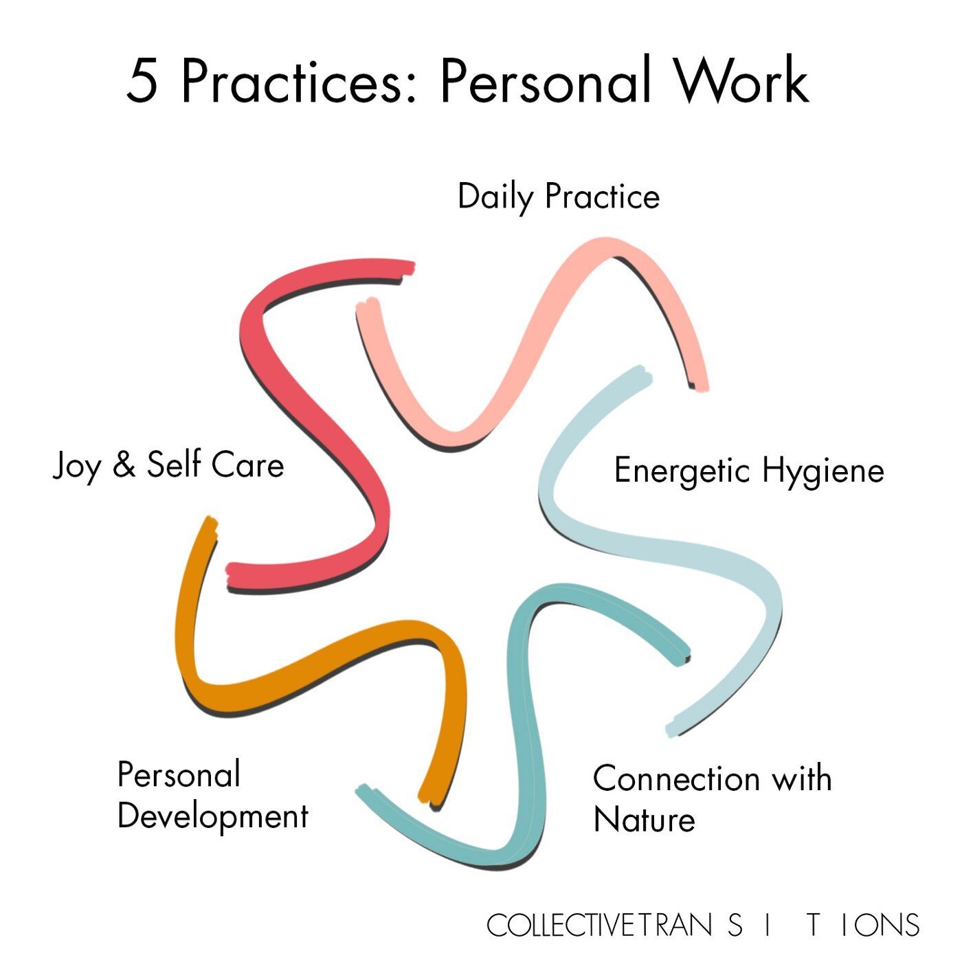 As agents of social change, our daily practices may look different from one another and also day to day for ourselves. These five areas emerged through our own personal experiences, as well as from witnessing clients, colleagues and partners working within the social and systemic change sector. Each of these practices are also inspired by other practices such as Art of Hosting, circle practice, dialogue practices and also indigenous practices.